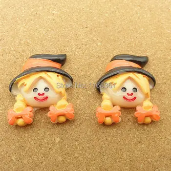 Best Offer for 1pcs/lot resin flat back Halloween orange hair girl cartoon 28mm Cabochons Hair Bow Center DIY Christmas decration C114-9